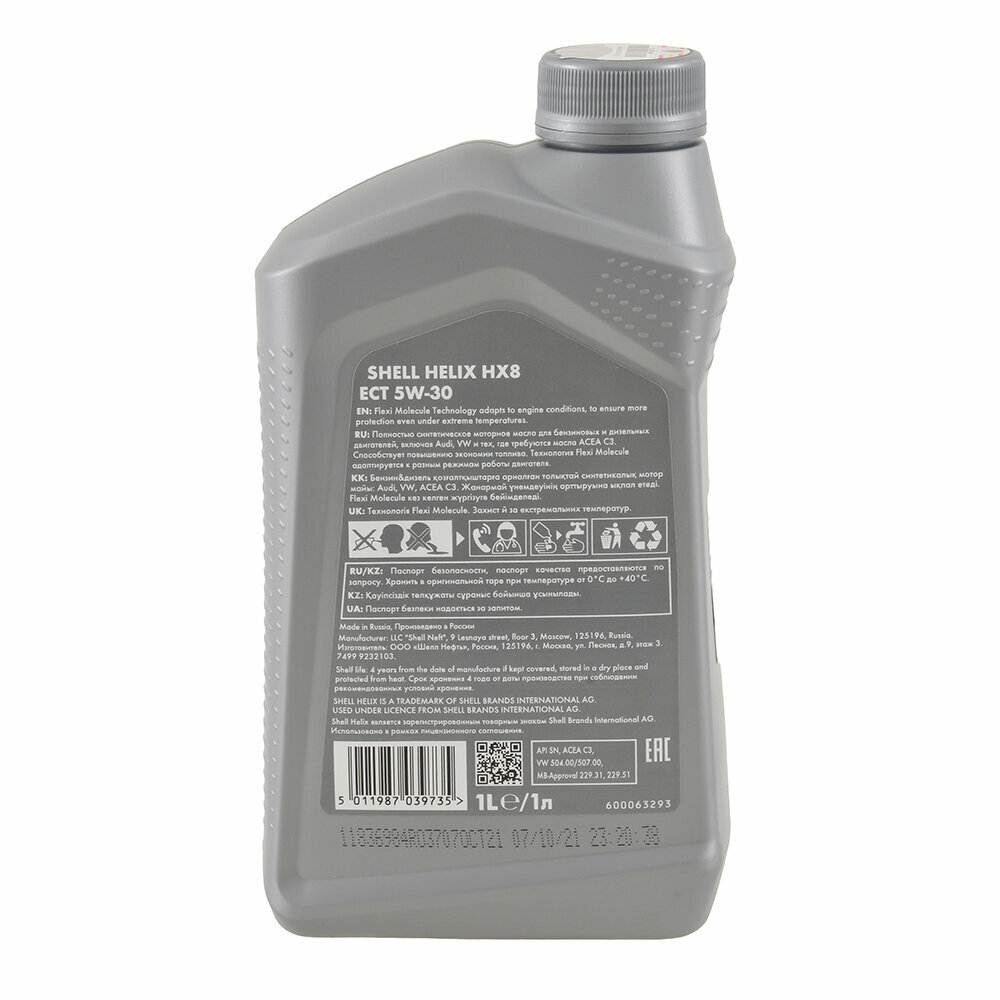 Синтетическое моторное масло SHELL Helix HX8 ECT 5W-30, 1 л, 1 кг, 1 шт