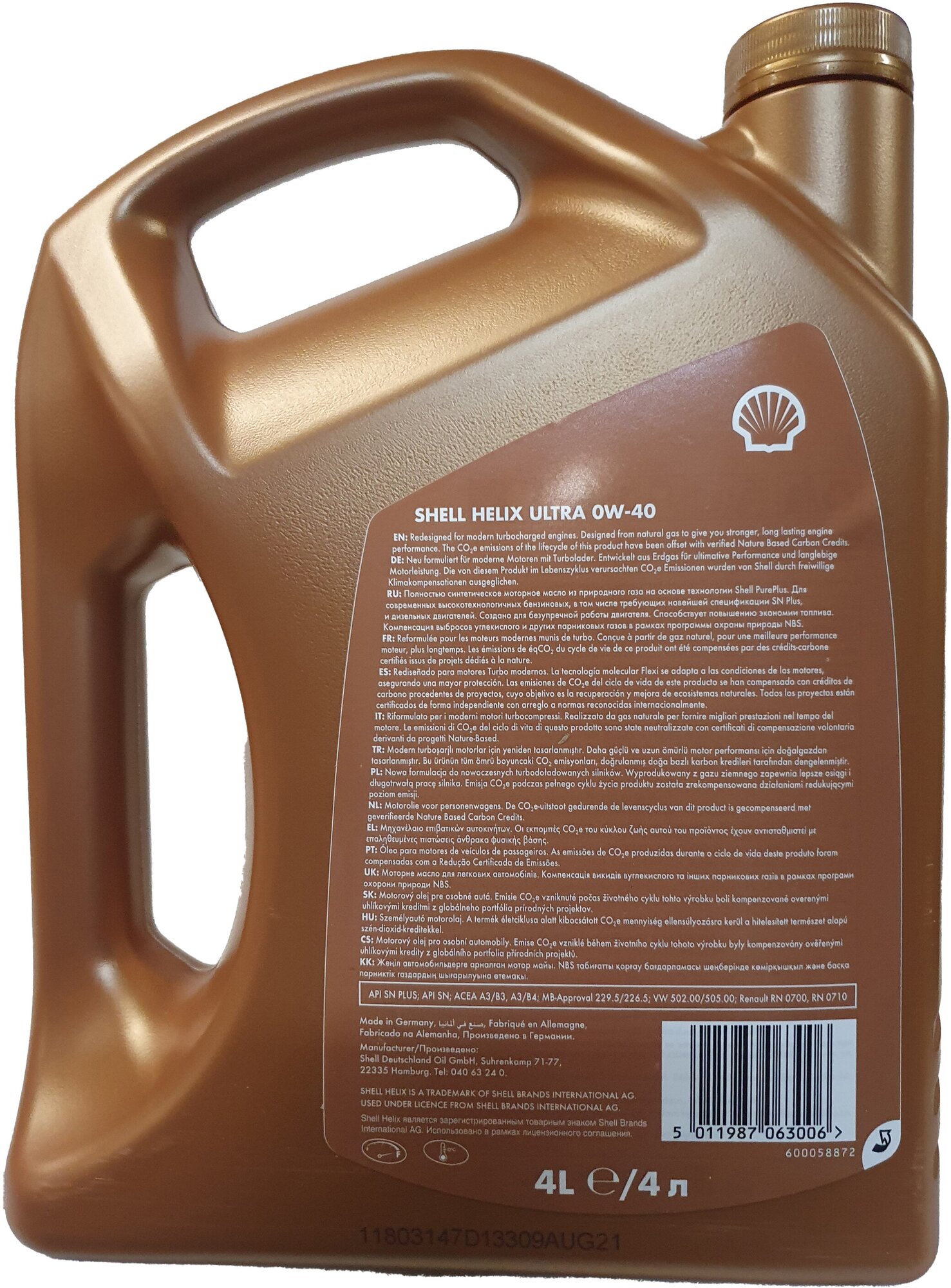 Синтетическое моторное масло SHELL Helix Ultra 0W-40, 4 л