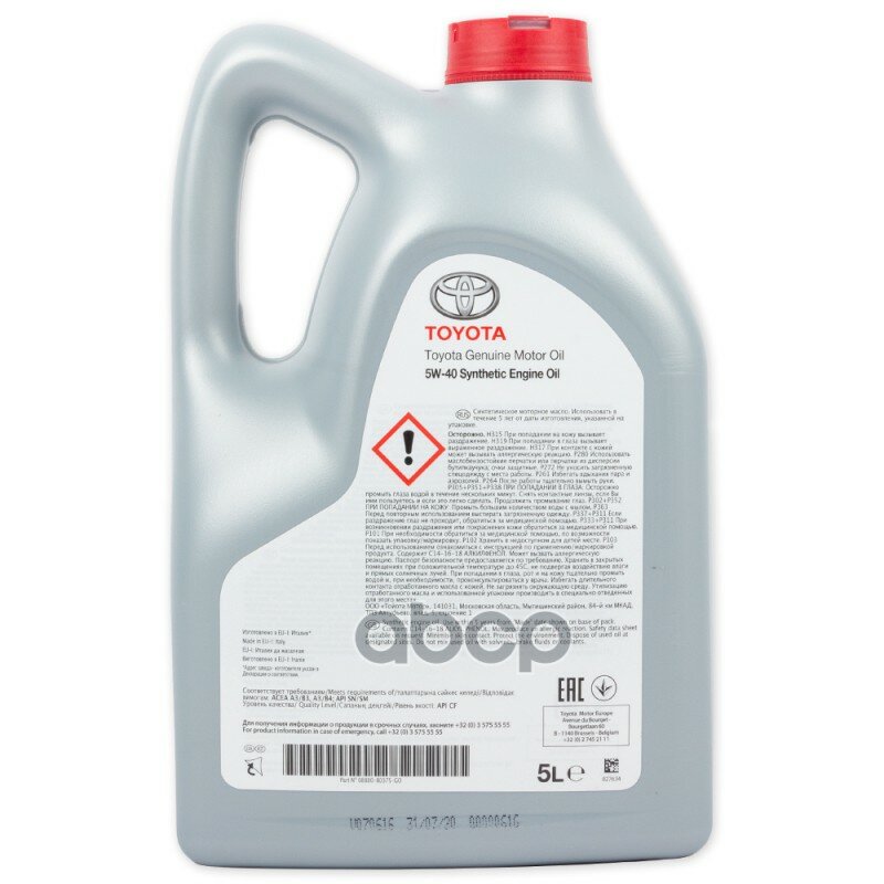 Моторные масла TOYOTA 0888080375go_масло Моторное 5w40 (5l)! Синт. Eu Toyot Api Sn/Sm/Cf, Acea B3/B4/A3
