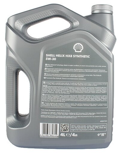 Синтетическое моторное масло SHELL Helix HX8 Synthetic 5W-30, 4 л, 1 шт