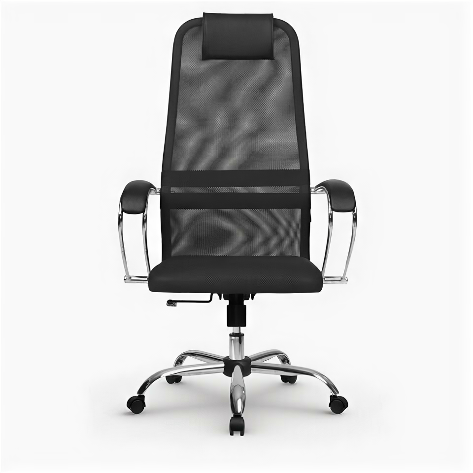 Кресло компьютерное для руководителей Метта SU-B-8, офисный стул на колесиках, с подголовником, ткань/сетка, черный