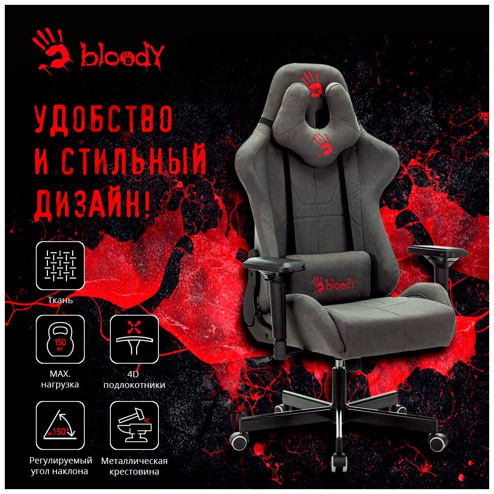Кресло игровое A4Tech Bloody GC-700, обивка: ткань, цвет: серый 18 670 ₽ Подробнее