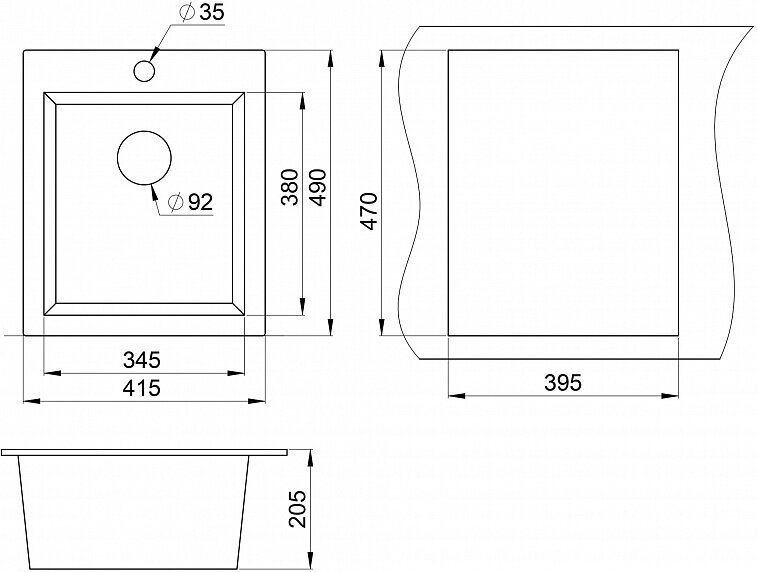 Лучшие цены. Габариты мойки, мм: 415 х 490, Размер чаши, мм: 345 х 380, Ширина шкафа для установки, см: 40, Установка: накладная, Цвет: темно-серый, Форма мойки: прямоугольная. Магазины в вашем городе.
