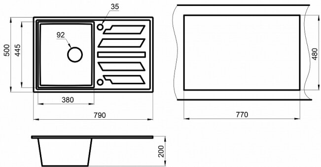 | Размеры врезного отверстия (накладная) | 770x480 мм |