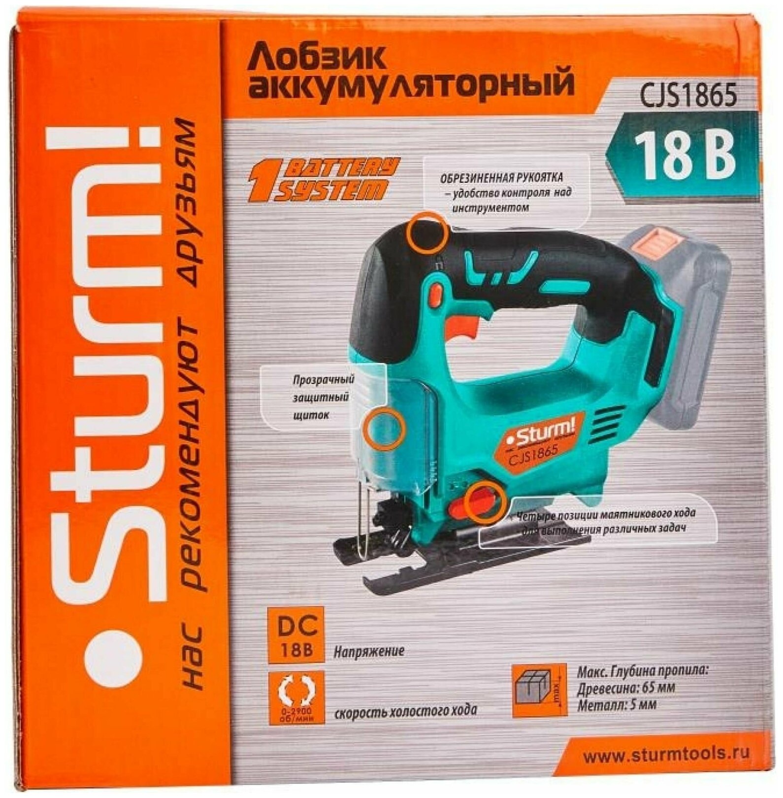 Лучшие цены. Аккумуляторный лобзик Sturm! CJS1865 1BatterySystem без ЗУ и АКБ. Магазины в вашем городе.