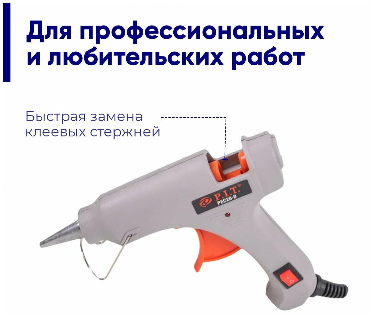 Пистолет клеевой 20 Вт PEC20-D (диаметр стержня 7мм, кабель 1 м, стержень в подарок)P.I.T.
