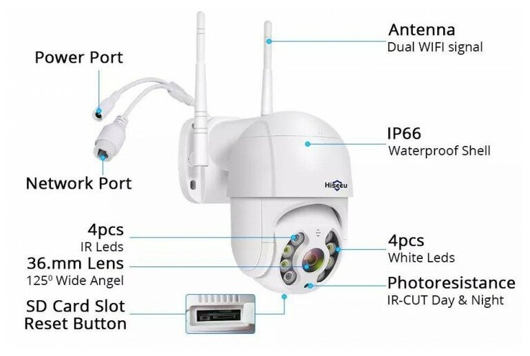 Камера видеонаблюдения IP камера видеонаблюдения купольная Hiseeu, 1080P, PTZ, Wi-Fi, CCTV, Onvif, 5X зум