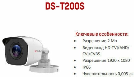 HiWatch DS-T200S 2Мп цилиндрическая HD-TVI видеокамера с EXIR-подсветкой до 30 м