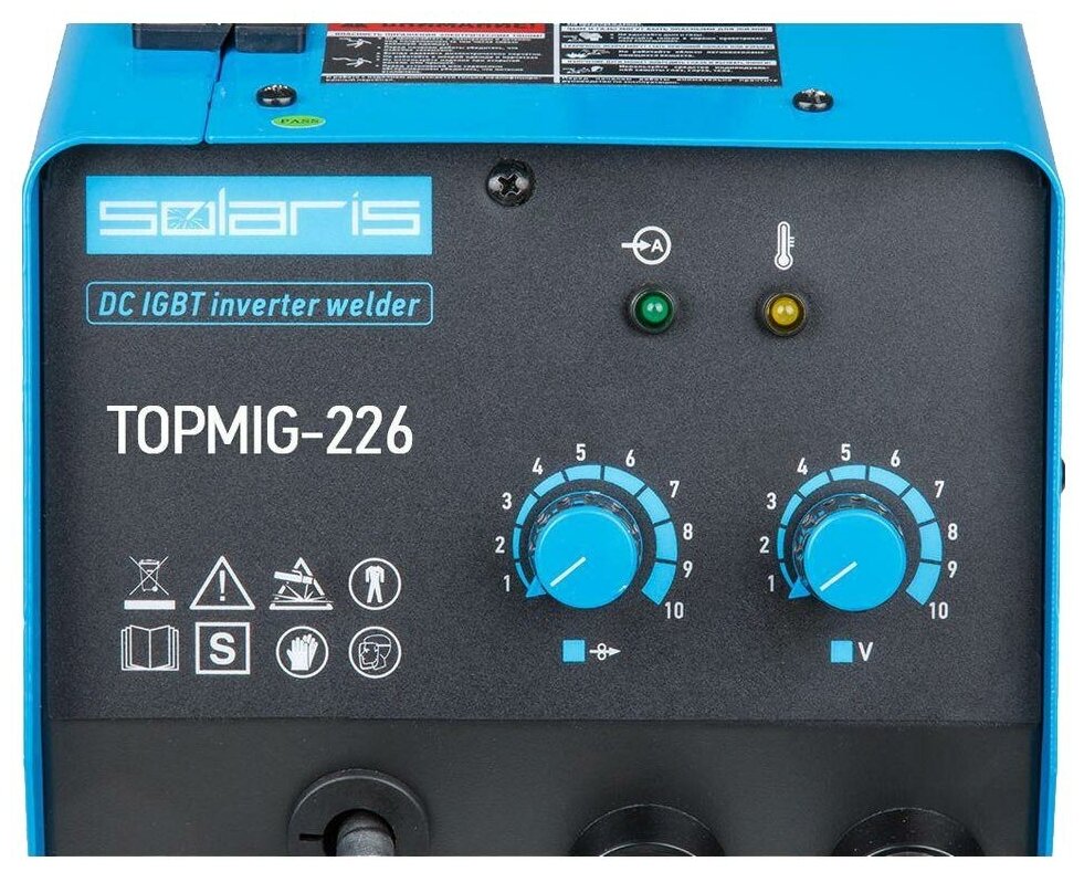 Сварочный аппарат Полуавтомат сварочный Solaris TOPMIG-226 с горелкой 3 м (220В; MIG/FLUX; евроразъем; горелка 3 м; смена полярности) (TOPMIG-226WG3) (SOLARIS)