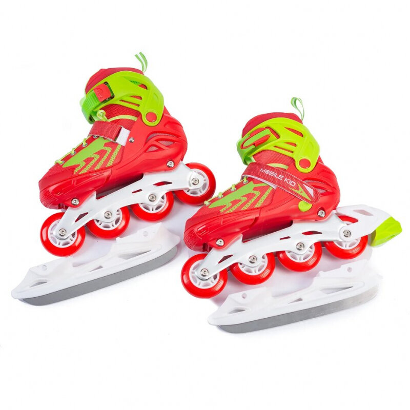 Коньки Раздвижные коньки-ролики Mobile Kid Uni Skate (2 в 1), размер M (31-34), красно-зелёный