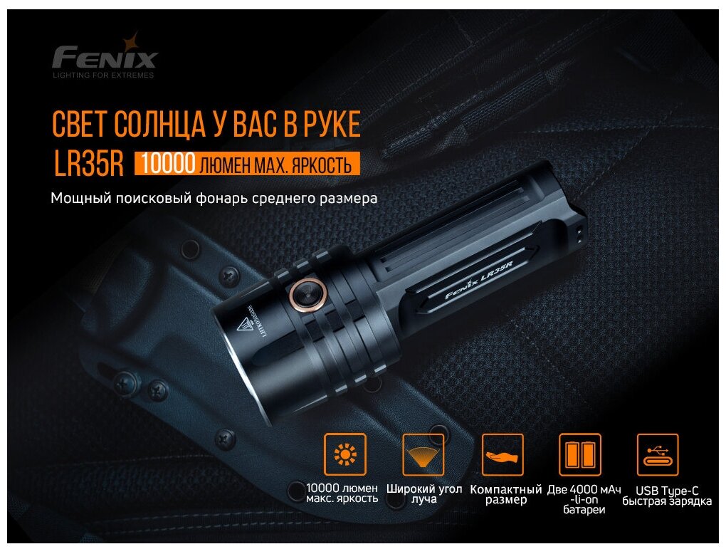 Фонарь поисковый Fenix Lr35r, 10000 лм .