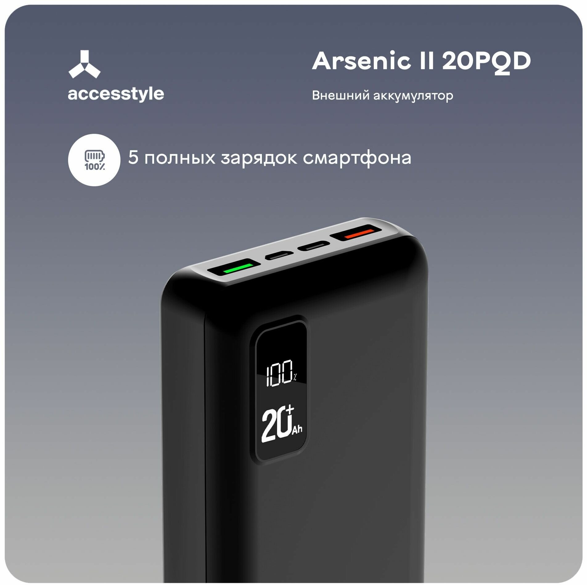 Accesstyle Arsenic II 20PQD 20000 мАч, чёрный 2 190 ₽ Подробнее