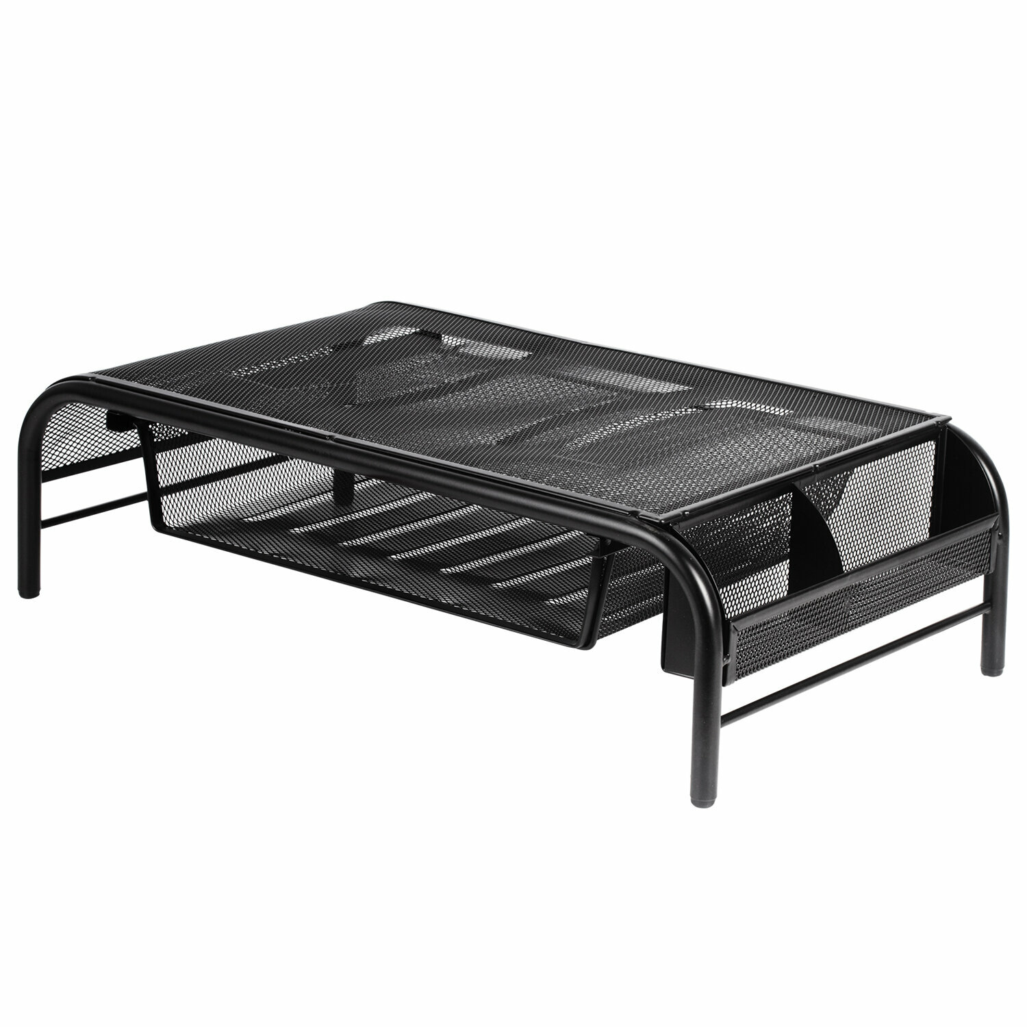 Подставка для принтера, монитора и ноутбука металлическая, 1 полка и 2 отделения, 50,5x30x14,5 см, Brauberg, черная, 512611