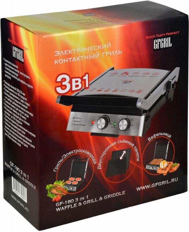 Лучшие цены. Электрогриль GFGril GF-180 2000Вт серебристый/черный. Магазины в вашем городе.