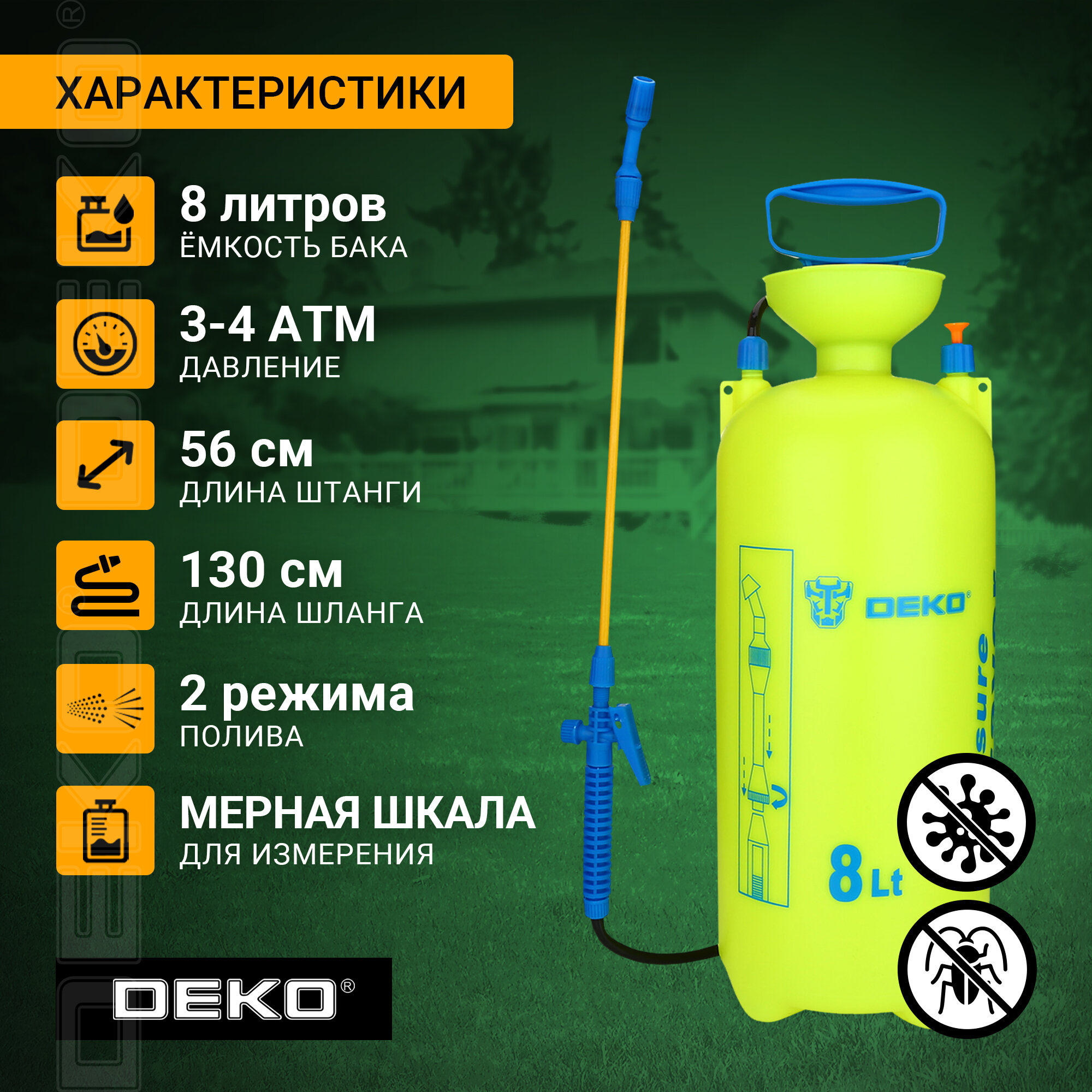 Опрыскиватели Опрыскиватель садовый помповый DEKO DKSP08, 8 л