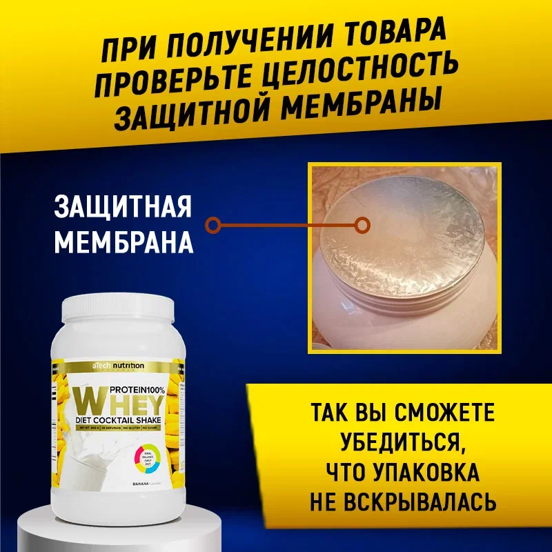 Протеин cывороточный Whey Protein 100%, со вкусом Банана, 900 г., 30 порций, aTech Nutrition