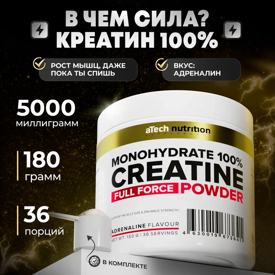 Креатин Креатин Моногидрат 100% aTech Nutrition, адреналин, 180гр