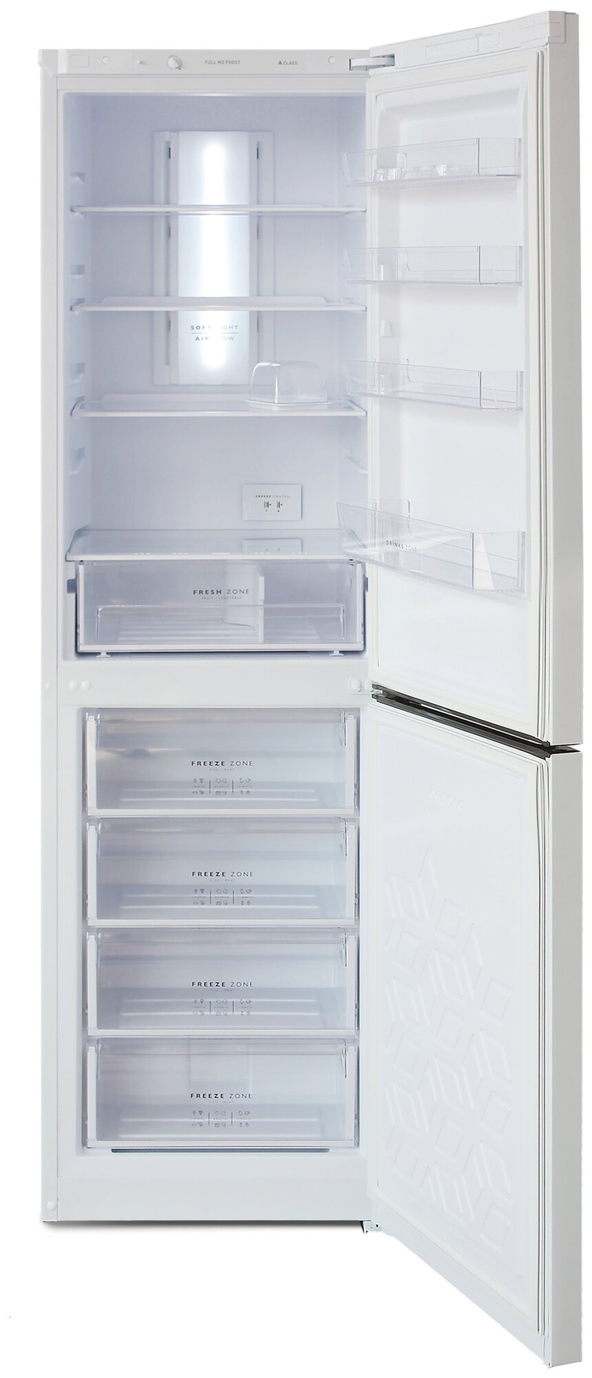 Лучшие цены. Двухкамерный холодильник с нижней морозильной камерой с системой Full No Frost. Цвет серебристый металлопласт. Система охлаждения Multi Air Flow. Регулировка влажности Humidity control. Единая зона для овощей и фруктов Fresh Zone с разделителем. LED освещение. Механическое управление. Общий объем 370л. Объем холодильной/морозильной камеры 240/130л. Класс энергоэффективности А. Максимальный уровень шума, 43дБ. Габариты В/Ш/Г 207/60/62,5 см. Количество полок в холодильном отделении 4 шт. Магазины в вашем городе.