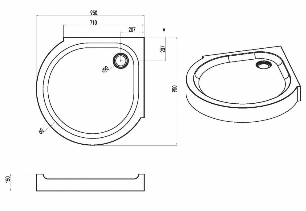 Душевой поддон AM.PM Like Round 95 (950х950х150) белый акрил W83T-333-095W