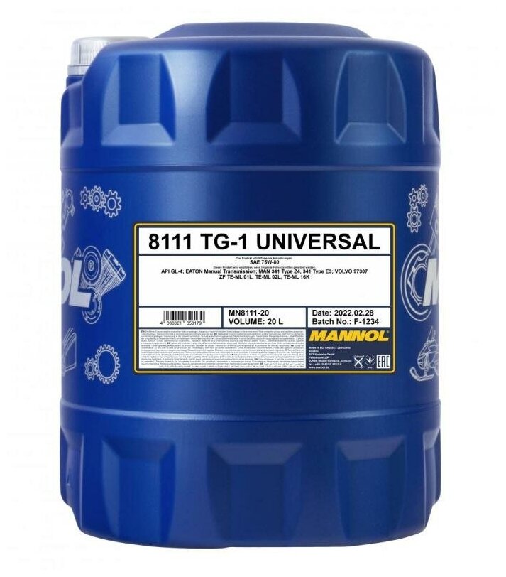 8111 MANNOL TG-1 UNIVERSAL 75W80 20 л. Синтетическое трансмиссионное масло 75W-80