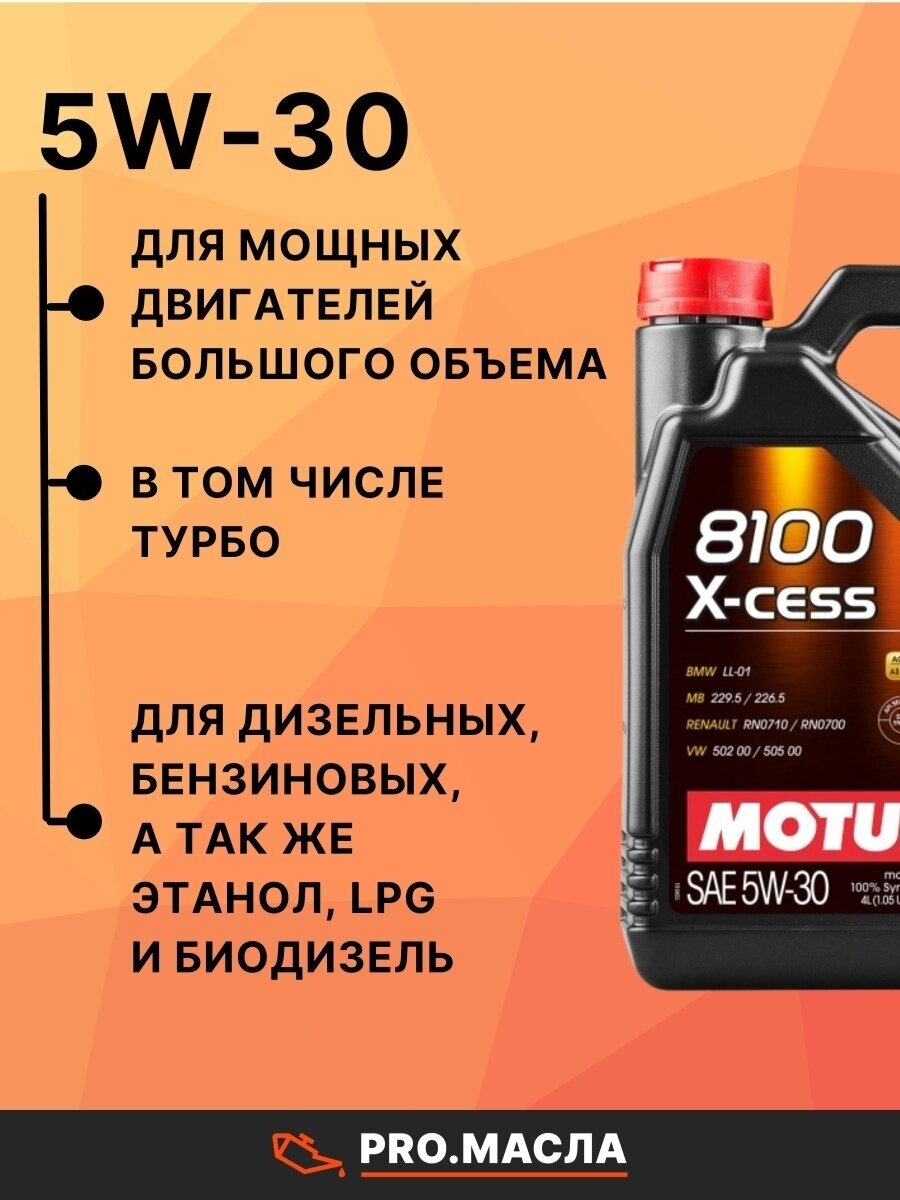 MOTUL 108945 MOTUL 5W30 (4L) 8100 X-CESS масо моторное 502.00/505.00 MB 229.5 BMW LL-01 RN 0700/0710 12 460 ₽ Подробнее