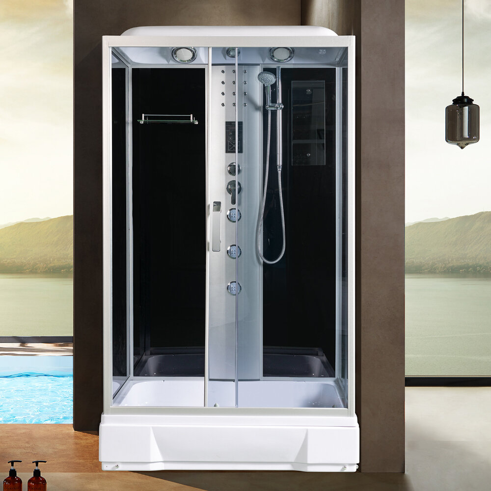 Лучшие цены. Длина 120 Сифон С гидрозатвором Ширина 80 Верхний свет Есть Высота 217 Полочки 1 полочка Ориентация Нет Зеркало Есть Форма Прямоугольная Радио Есть Материал задних стенок Стекло Телефон Нет Материал поддона Акрил Динамики Есть Дисплей Сенсорный Конструкция дверей Раздвижные Смеситель Стационарный Толщина стекла 4 мм Верхний душ Тропический ливень Цвет передних стекол Тонированное Подсветка “Лунный свет” Есть Цвет задних стенок Черный Ручной душ Есть Количество створок двери 1 Вентиляция Есть Профиль. Магазины в вашем городе.