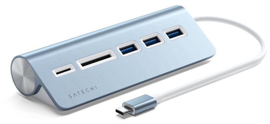 Картридеры и USB-хабы USB-хаб и картридер Satechi Type-C Aluminum USB 3.0 Hub & Card Reader (ST-TCHCRB) голубой
