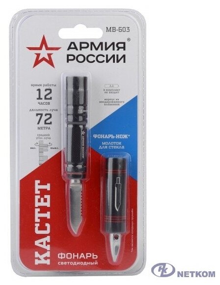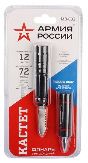 MB-603 Фонари АР армия россии универс. Кастет [1.5Вт, алюм, нож, молоток, 1хАА, бл] (10/60/960)