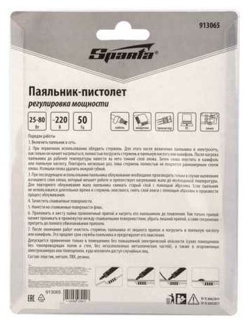 SPARTA 913065 Паяльник-пистолет с регулировкой мощности 25-80 Вт, 220 В Sparta 913065 SPARTA 913065