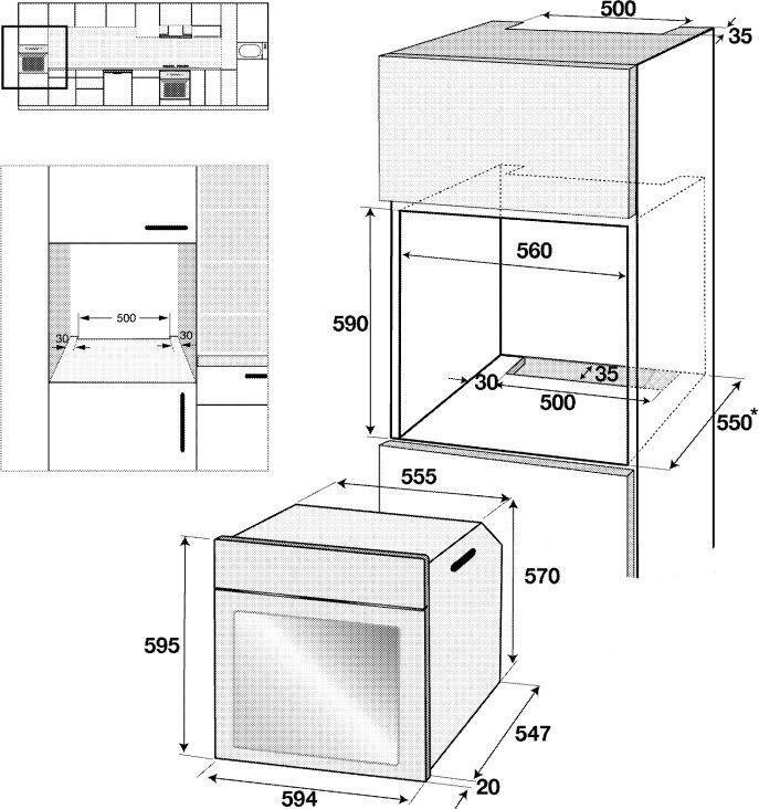 | Размеры для встраивания (ВхШхГ) | 590x560x550 мм |