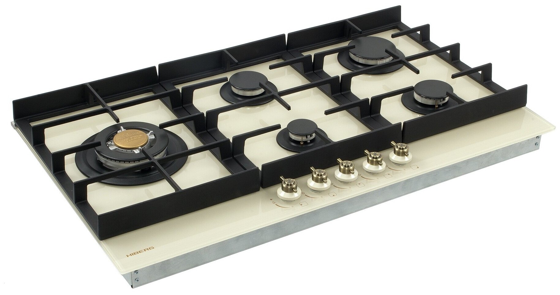 Лучшие цены. Газовая варочная панель HIBERG VM 9055 RY Особенности: Тип варочной поверхности Газ Количество конфорок 5 шт Материал решеток Чугун, усиленный Газ-контроль конфорок Есть Электроподжиг конфорок Автоматический от ручки WOK конфорка 1 шт Регулировочные ручки Поворотные, Рустик Материал варочной поверхности Закаленное стекло Характеристики: Габариты (ШхГ): 874х510 мм Габариты для встраивания (ШхГ). Магазины в вашем городе.