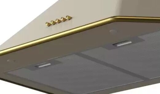 Настенная вытяжка Korting/ Кухонная вытяжка, Настенная вытяжка, Ширина 60 см, Мощность: 850 м3/ч, 3 режима, Механическое кнопочное управление, Алюминиевые жировые фильтры, 2 LED лампы освещения, цвет - античный белый, профиль рамок и кнопки - хром