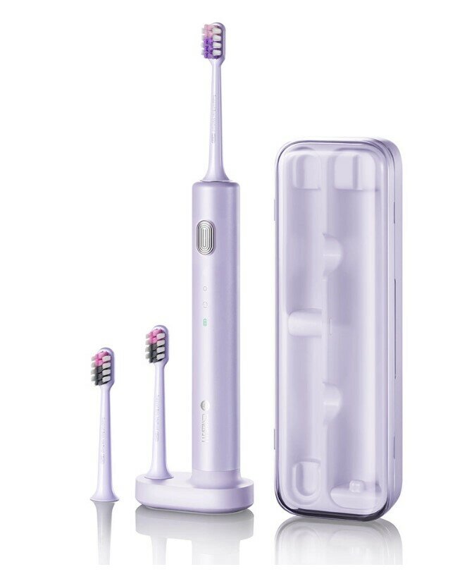 Электрическая зубная щетка DR.BEI BY-V12, отбеливание зубов, 3 сменные насадки + футляр в комплекте с функцией беспроводной зарядки, 3 режима очистки, ультразвуковая, золотисто-фиолетовый
