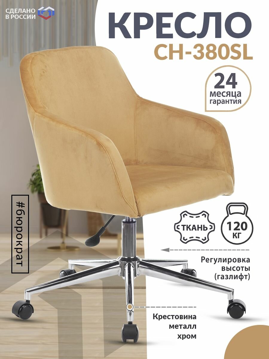 Кресло Бюрократ Ch-380sl горчичный Velvet 73 крестовина металл хром Ch-380sl/mustard .
