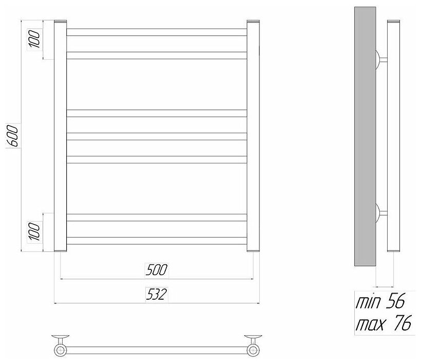 Полотенцесушитель электрический Lemark Ursus Lm72607еbl П7 500x600 левый/правый черный .