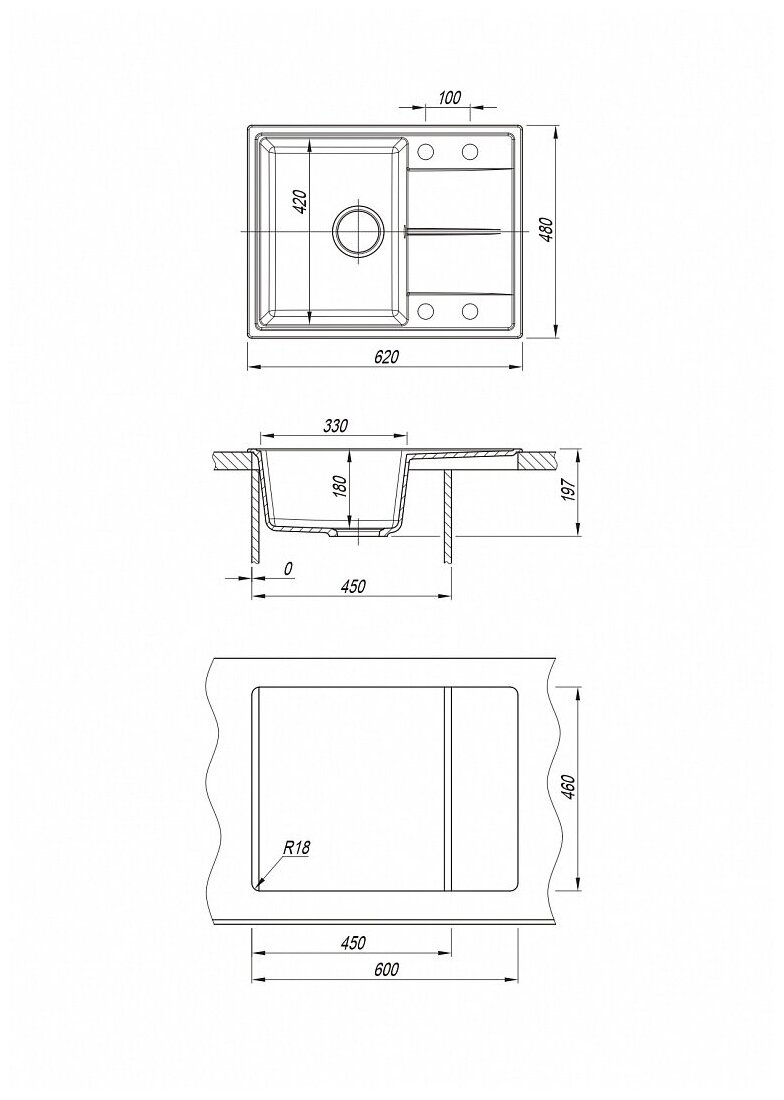 | Отверстие под смеситель | + |