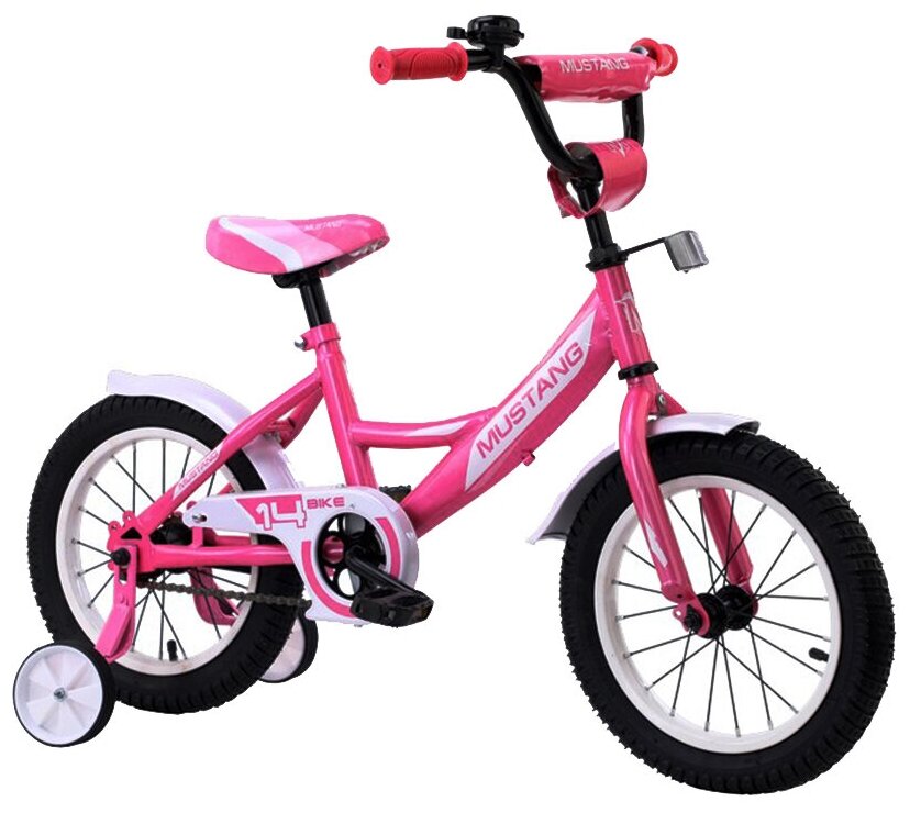 Лучшие цены. Детский велосипед Mustang ST14073-A оснащен колесами 14" с покрышками типа полуслик и имеет стальную раму a-типа с удобным дизайном, чтобы ребенку было комфортно на него усаживаться. По бокам расположено 2 страховочных колесика, которые можно будет снять, когда ребенок научится держать равновесие. Стальные крылья защищают от летящей грязи и брызг. Цепь закрыта накладкой, предотвращающей попадание в нее элементов одежды. На руле есть мягкие накладки. Сидение мягкое за счет наличия пенного наполнителя. Магазины в вашем городе.
