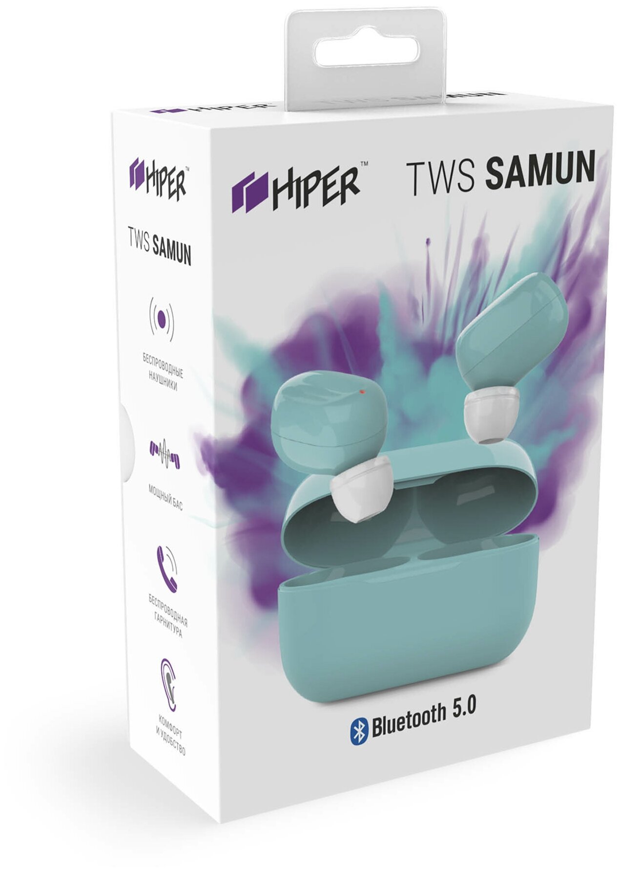 Наушники Hiper TWS SAMUN Blue Bluetooth 5.0 гарнитура Li-Pol 2x40mAh+300mAh, голубой