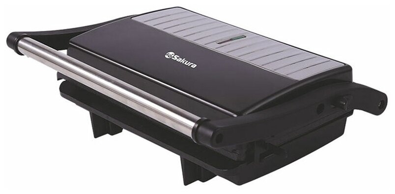 Электрогриль Sakura SA-7663, 1кВт, антипригарное покрытие, 2 рифленые панели для жарки