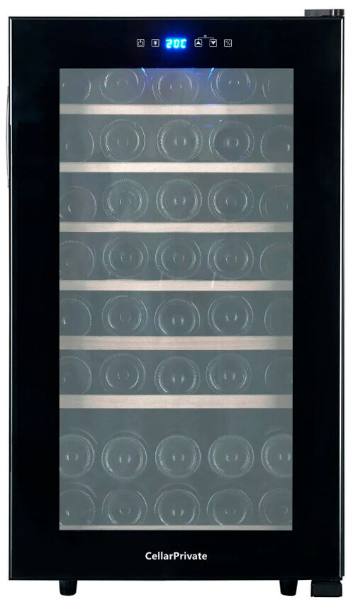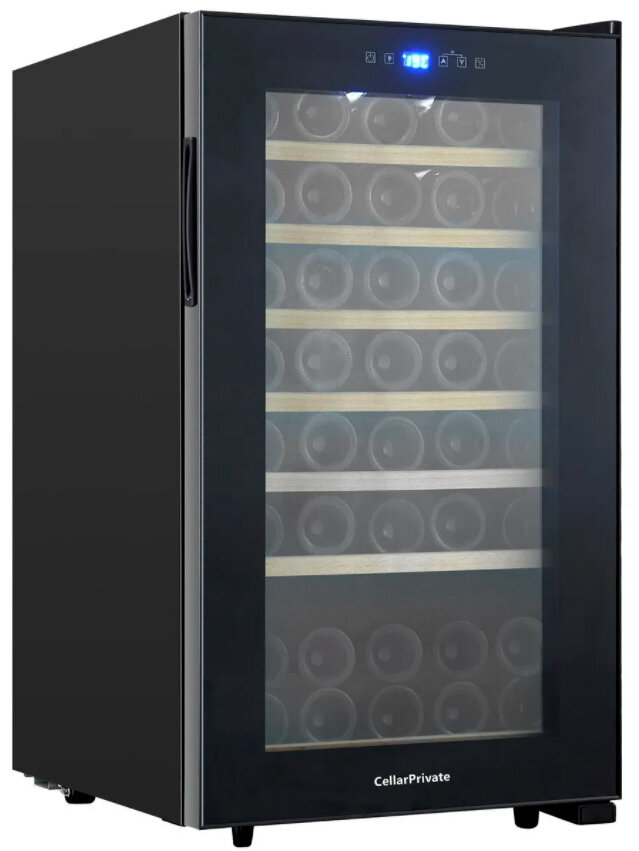 Лучшие цены. Монотемпературный винный шкаф Cellar Private CP052 используется для охлаждения 50 бутылок вина, которые размещаются за дверцей из затемненного стекла. Особенности Компрессорная система охлаждения Корпус металл, цвет черный (возможны разные варианты расцветки) Черная дверь, открывается слева направо Двойное, тонированное стекло, с защитой от У.Ф. излучений Металлическая ручка, устанавливается снаружи на дверцу 7 деревянных съёмных полок, на которых с легкостью разместятся любые бутылки Светодиодная (LED). Магазины в вашем городе.