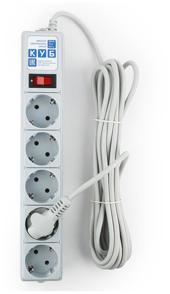 Фильтр-удлинитель Power Cube B 5.0 м 5 розеток (серый) 10А/2,2кВт/ Surge protector Power Cube B 5.0 m 5 outlets (gray) 10A / 2.2kW