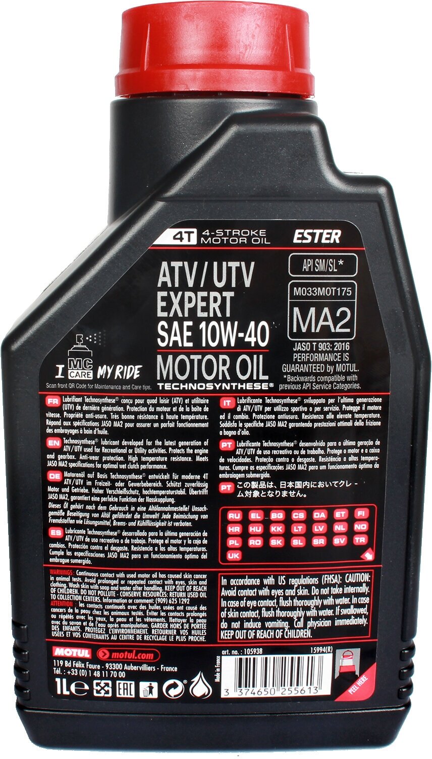 MOTUL 105939 Масло моторное Motul ATV UTV Expert 10W40 полусинтетическое 4 л 105939