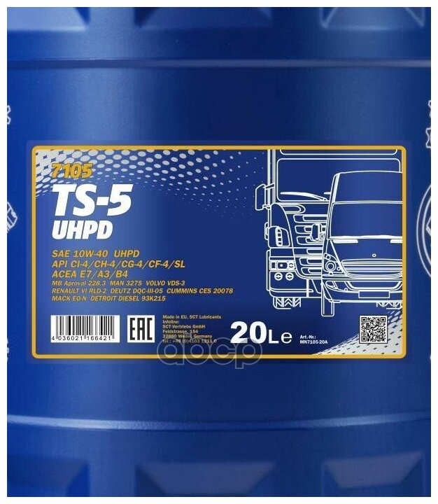 SCT GERMANY MN710520 Масо моторное 10W40 поусинтетическое MANNOL 20- CI-4/CH-4/SL ESTER MN7105-20, TS-5 UHPD, 14 470 ₽ Подробнее