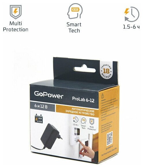 З/У для свинцово-кислотных аккумуляторов 6 и 12V GoPower ProLab 6-12 1.0A (1/100) GoPower ProLab 6-12 00-00015352