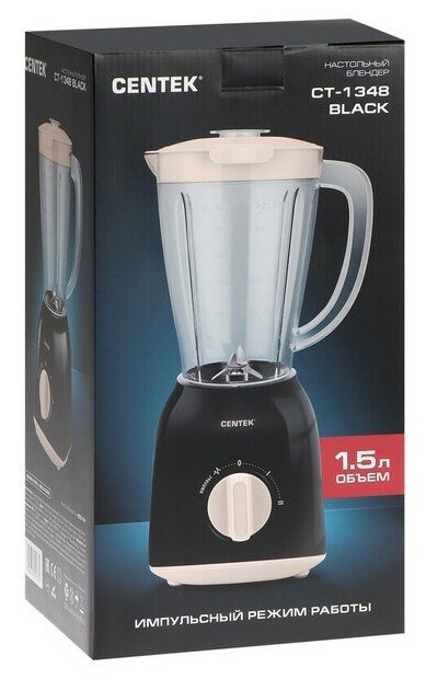 Блендер Centek Ct-1348, стационарный, 600 Вт, 1.5 л, 2 скорости, импульсивный режим, чёрный Centek 9
