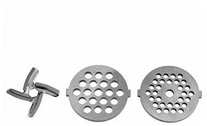 | Насадки | 3 диска для фарша / 3, 5 и 7 мм / / 3 насадки для нарезки/шинковки / для кеббе / для домашних колбас / для томатов / мягких овощей |