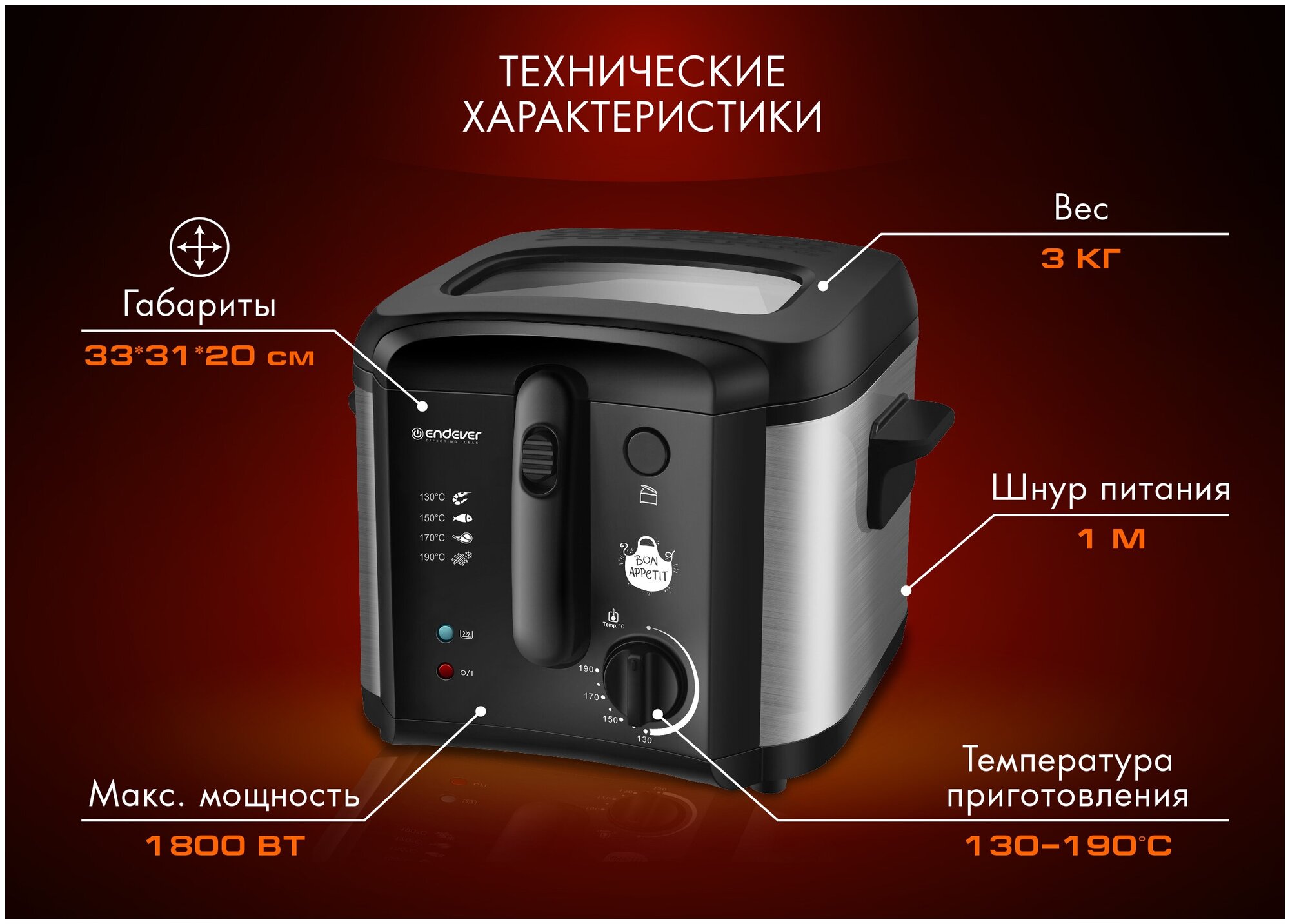 Фритюрница Endever Skyline FR-115 /1800 Вт, объем чаши 5л, объем масла 2,5 л/