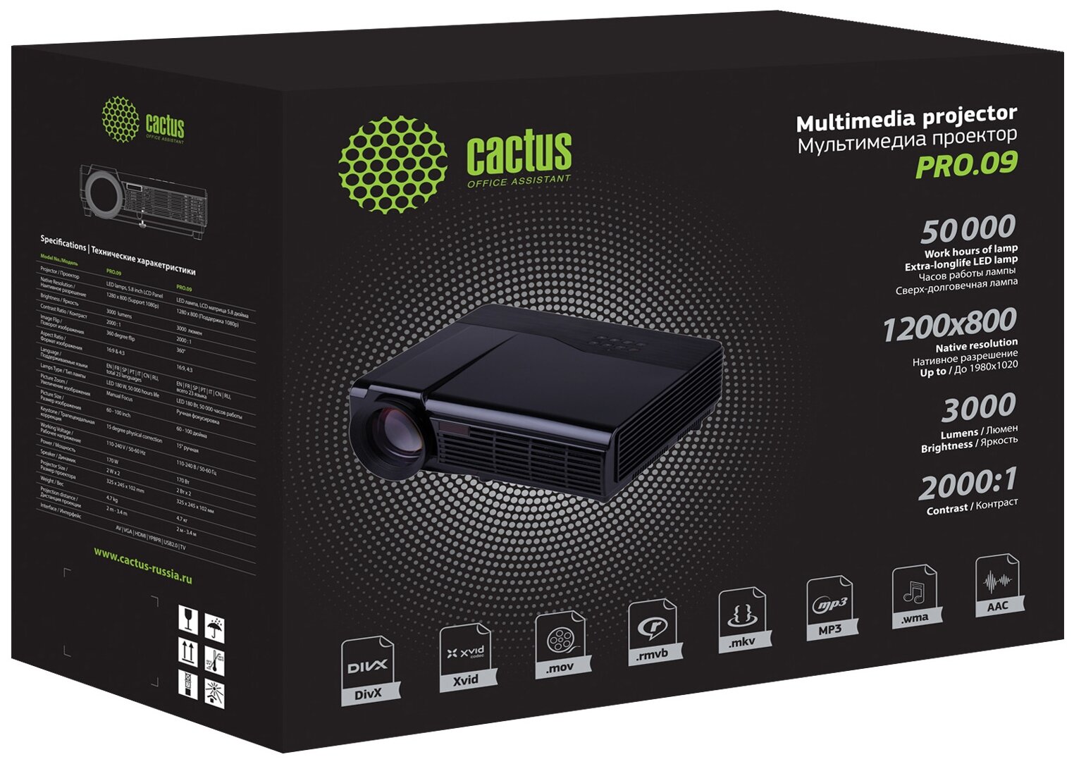 Лучшие цены. Качественным изображением отличается проектор CACTUS CS-PRO.09B.WXGA-W. Данная модель прекрасно подойдет для использования в школьных классах или конференц-залах, так как способна проецировать картинку с расстояния 3,4 м. Благодаря разрешению 1920 x 1080 пикселей и яркости 3000 люмен воспроизводится изображение с потрясающей детализированностью и реалистичностью. Лампа проектора выделяется достаточно продолжительным сроком службы в 50000 ч. Магазины в вашем городе.