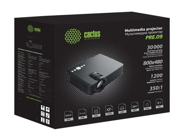 Проектор cactus CS-PRE.09B.WVGA 1280x800, 350:1, 1200 лм, LCD, 1.5 кг