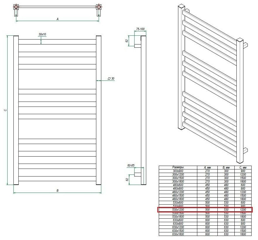 | Габариты (ШхВхГ) | 530x1200x100 мм / вес — 8.9 кг / |